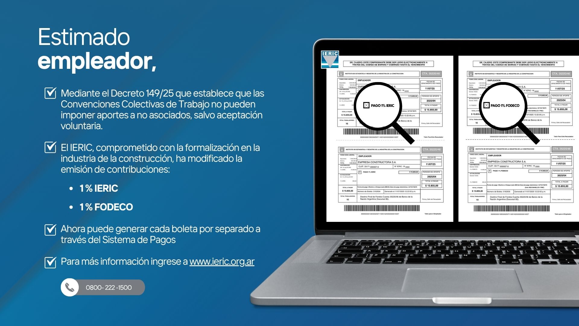 Con el objetivo de facilitar la gestión de sus contribuciones, el IERIC ha implementado una mejora en el Sistema de Pagos. Desde ahora, podrá emitir por separado, de manera ágil y sencilla las contribuciones: 1% IERIC 1% FODECO